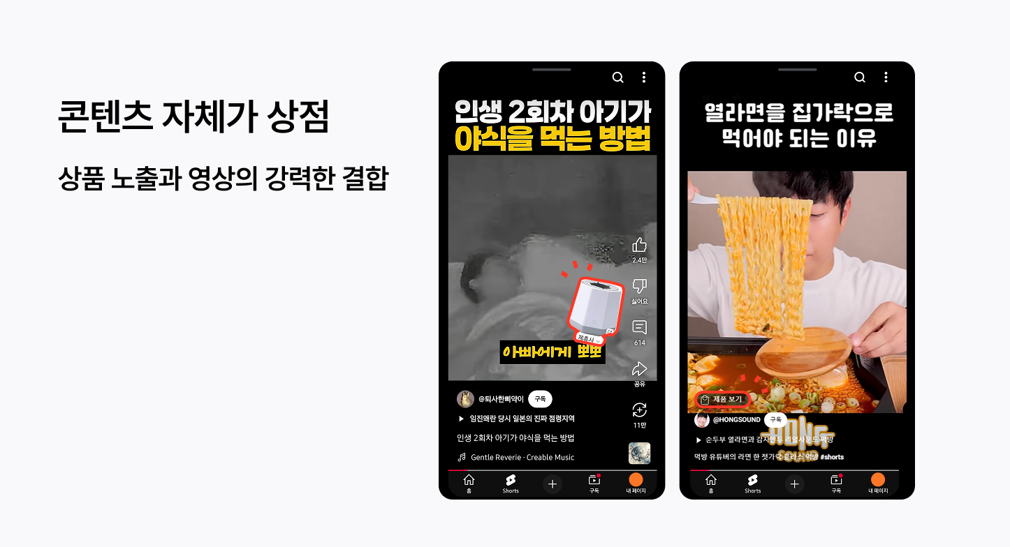 인지, 클릭, 구매 과정에서 모두 숏폼 동영상 광고를 통해 유입돼, 그 영향력이 나날이 중요해지고 있기 때문이에요. ‘유튜브 쇼츠’로 고객을 유입시키는 건 이제 선택이 아닌 필수가 됐죠.