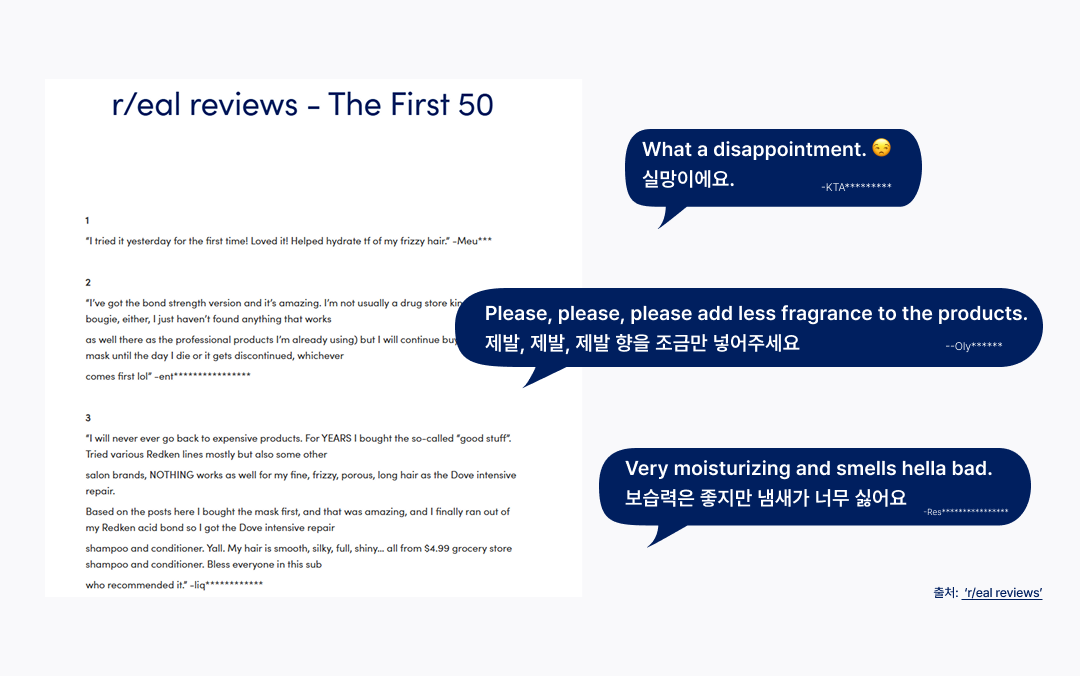 도브의 캠페인에서 주목해야 할 점은 바로, 부정 리뷰를 지워야 할 오점이 아니라 ‘브랜드 성장을 위한 도구’로 바라본 ‘관점의 전환’입니다.